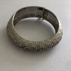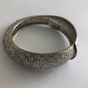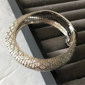 JCM Sterling Silver 925 Unique Bracelet Italy Laser Cut Bangle Statement 7.5”