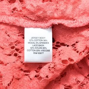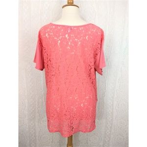 JCP Boutique Womens T-shirt Pink Salmon Lace Back Short Sleeve