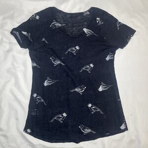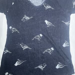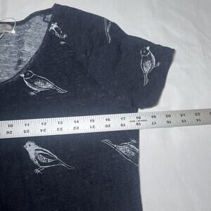 JCP JC Penny 100% Linen Navy Blue Bird Print Short Sleeve T-Shirt Size XL Summer