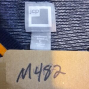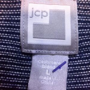 Stay stylish and comfortable with this JCP navy striped cashmere blend sweater in a mens size large. Perfect for any occasion.