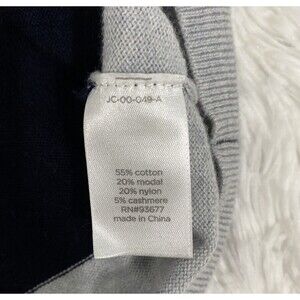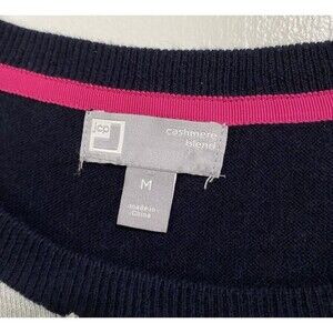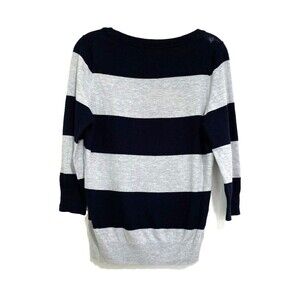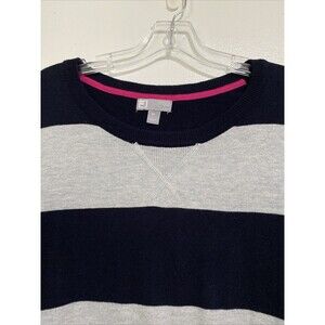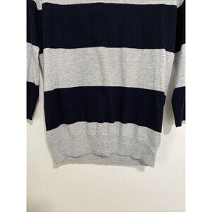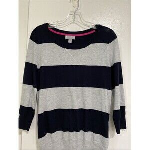 JC Penney Pullover Sweater Top Womens Size M Black gray Striped Cashmere Blend Sleeve 3/4 pre owned in great condition please see pictures for more details and accurate measurements.