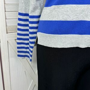 JCP Striped V-neck Popover Sweater Gray Blue XL Long Sleeve