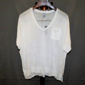 JCP White Sheer Pullover High Low V Neck Knit top/shirt.