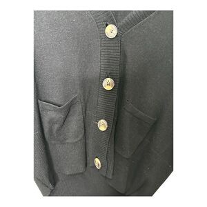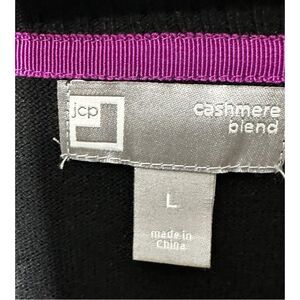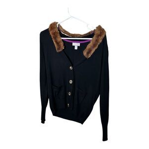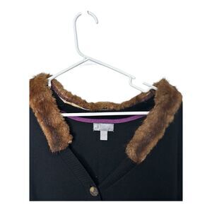 JCP cashmere blend black button front cardigan brown faux fur collar large
