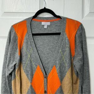 JCPenney Cardigan Argyle JCP Cashmere Blend Sweater Fall Colors XL