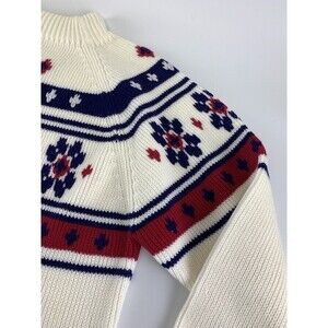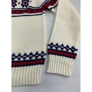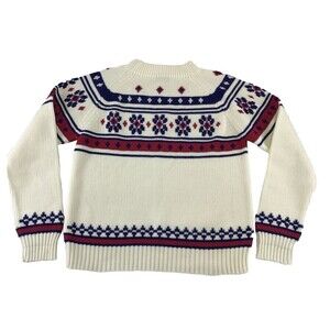 JCPenney Fair Isle Knit Sweater Cream Navy Red Acrylic Pullover Vintage Medium.