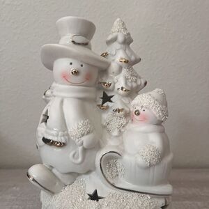 JCPenney Home Collection Snowman Ivory Bisque Accent Light Lamp Gold Porcelain