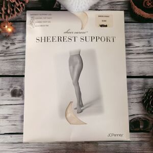 JCPenney Sheer Caress Pantyhose Stockings Sheerest Support Queen Short Bone NEW. Condition is new and never removed from package. Size is Queen short. Color is Bone. Discontinued. Please see all photos for detailed condition.