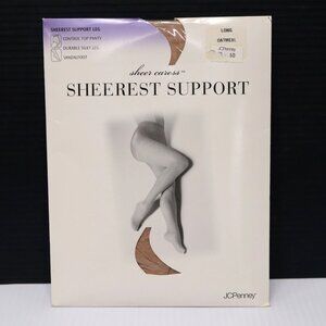 JCPenney Sheerest Support Control Top Sandalfoot Pantyhose Oatmeal Sz Long