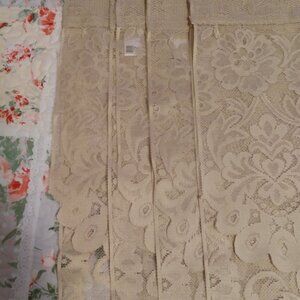 4 piece, 2 sets, JCPenney shari lace swags, 30x72, linen color, brand new, never used.
