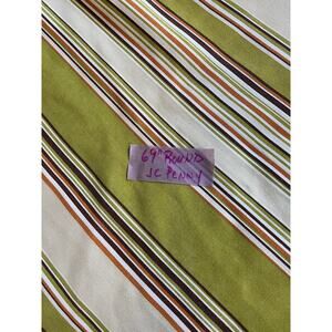 JCPenny Home Studio retro stripped 69" round tablecloth green, orange, brown