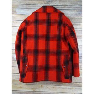 Pre-Owned. Purchased from estate. Moth Hole above one pocket. Inside lining near bottom has some discoloration. One of the slant pocket linings is torn. Stain on sleeve. Selling as is.