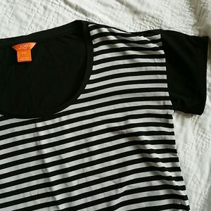 Light and fun black and off-white striped top by Joe Fresh JCPenny. Solid black back. Great used condition!! Laying flat, about about 20" pit to pit and 23" length.