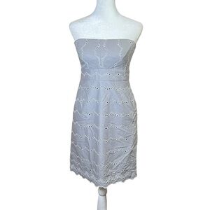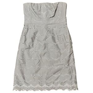 J.CREW 100% Cotton Strapless Eyelet Babydoll Mini Dress Scalloped Pockets Size 0