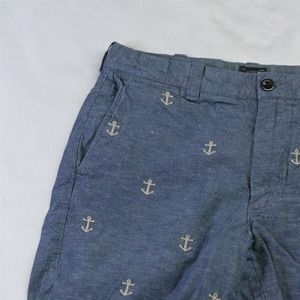 J.CREW 30 x 9" Blue Stanton Linen Blend Anchor All Over Chino Shorts