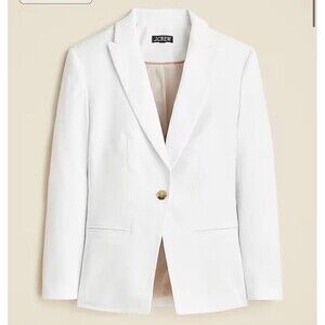 The J.CREW Alexandra Blazer in a Stretch Linen Blend, Size 6 in White, is a stylish and sophisticated addition to any woman's wardrobe. This blazer features a preppy style and is made from a high-quality linen blend material, making it perfect for both casual and formal occasions. With its sleek design and classic white color, this blazer is sure to elevate any outfit with its pant suit style. Ideal for the modern woman who values both fashion and comfort in her clothing choices.