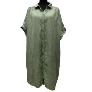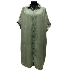 J.CREW Baird McNutt Irish Linen Shirt Dress in Sage Green - Plus Size 2X