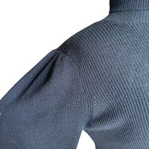 Features pullover style, turtleneck, long sleeve with puff shoulder detailing, ribbed knit, lightweight, balloon sleeve.