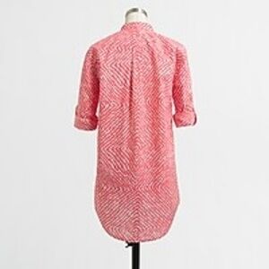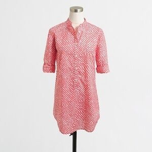 JCREW Button Down Printed Tunic Top Womens Size XS Rolled Tab Sleeve 100% Cotton