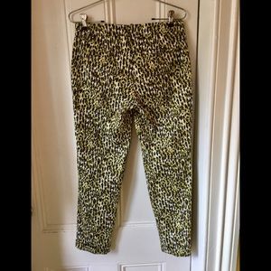 These pants are brand new with a $148 price tag. They are size 0 and 98% cotton and 2% Elastane. They have a great pattern and a great feel to them. Can be dressed up with a nice blouse and heels. Perfect for traveling. Does not wrinkle. WAIST-(across one way)16” LENGTH-(waist line to bottom hem) 36” INSEAM-(crotch to bottom hem) 14” FRONT RISE (crotch to bottom waist) 15” LEG OPENING (Bottom across one way) 7”