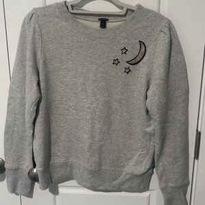 J.CREW CELESTIAL PATCHES GREY SWEATSHIRT STARS AND MOON. SIZE: M.