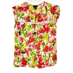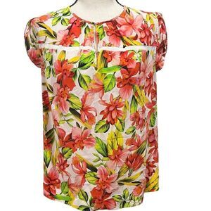 J. CREW COLLECTION Tropical Floral Print Silk Short Sleeve Blouse Top Size 6