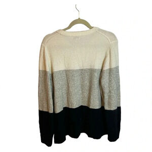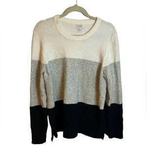 Pre owned overall good condition. Does have some minor wear. WOMENS size xl. This is a super soft gray white and black colorblock sweater.