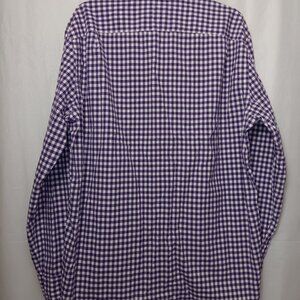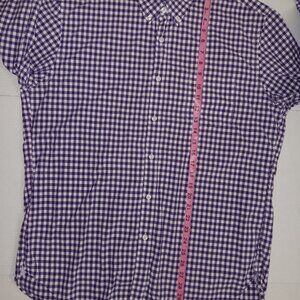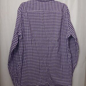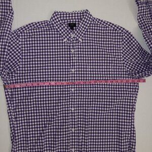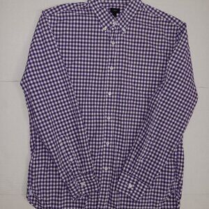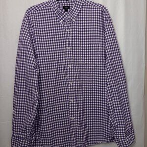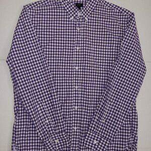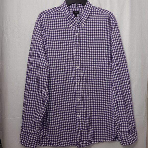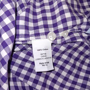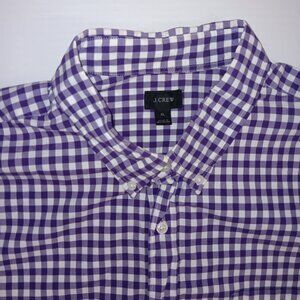 Size XL - Men's J.Crew gingham plaid print long sleeve button down shirt in the colors purple and white. The material is 100% cotton in good preowned condition