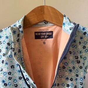 JCREW CREW CUTS LONG SLEEVE RASH GAURD ONE PIECE SWIMSUIT BLUE FLORAL HALF ZIP GIVES THE ABILITY TO COMFORTABLY GET IN AND OUT OF THIS ONSIE RASH GAURD LONG SLEEVE.