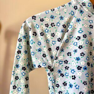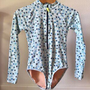 JCREW CREW CUTS SIZE 10 LONG SLEEVE RASH GAURD ONE PIECE SWIMSUIT BLUE FLORAL