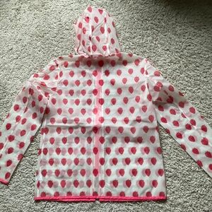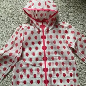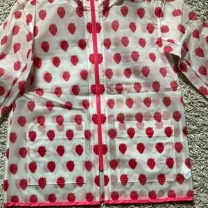 J.CREW CREWCUT GIRLS POLYURETHANE RAIN JACKET IN STRAWBERRY PRINT. SIZE 16. ITEM# H 7903 SPRING18.