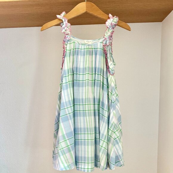 J.CREW CUTS GIRLS RUFFLE TRIM PASTEL PLAID FLOWY LIGHT WEIGHT DRESS LINED SIZE 10 BUT LAST WITH TIME AND GROWING SPURTS. THIS DRESS IS PERFECT FORA VACATION, SPECIAL EVENT, GRADUATION, SUMMER, TRAVEL, TWIRL, COTTON AND COMFORTABLE.