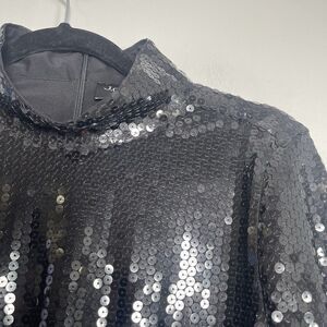 J.CREW Collection Fitted Turtleneck Top in Sequin Size 8 Black NEW Party BV871