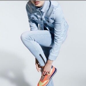 J.CREW Cotton Toothpick Ankle Zipper Pants Size 30 Railroad Stripe