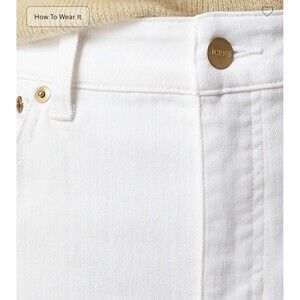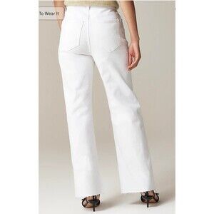 The J.CREW Curvy Slim-wide Jeans in size 27 are a classic and stylish addition to any woman's wardrobe. These denim jeans feature a white color with a preppy raw hem, perfect for a casual yet put-together look. Made from a comfortable cotton blend fabric, these wide-leg jeans have a zip closure and are ideal for a bohemian, college-inspired, or 90s-themed outfit. The solid pattern and quality construction from J.CREW make these jeans a versatile and fashionable choice for any occasion.