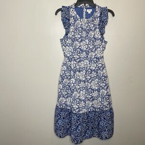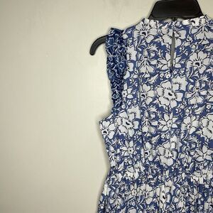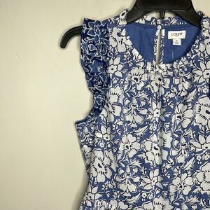 J.CREW Dress Women 2 Blue Floral Above Knee NEW Ruffle Trim Pockets CA214