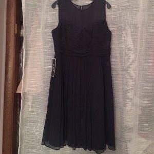 Tags still on! Never been worn, short, navy semi formal/formal dress from J.Crew. Size 16. 100% silk with 100% polyester lining. Ran a little small in the bust—I'm usually a 12-14 in dresses but this one was snug. Great dress for any occasion!