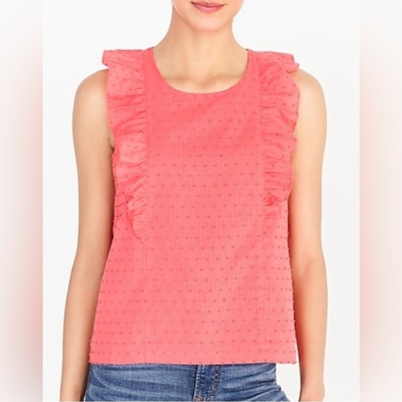J.CREW FACTORY ruffle tank top blouse fully lined textured key hole button in back