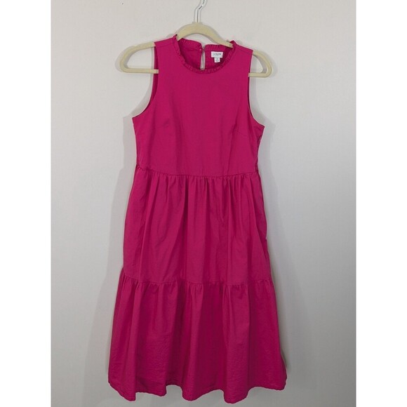 J.CREW Factory Hot Pink Shirred Tiered Sleeveless Ruffle Midi Dress Size 4