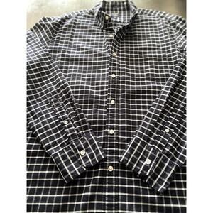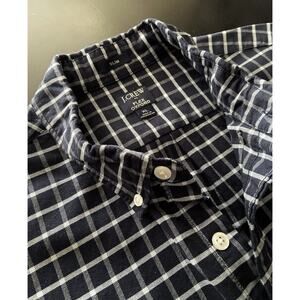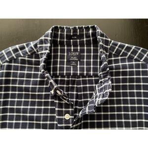 This J.CREW Flex Oxford Slim Fit Navy shirt in size XL is a stylish addition to any fall/winter wardrobe. The plaid pattern in navy and white, paired with the easy care and chest pocket features, make it a versatile choice for any casual occasion. The slim fit and long sleeves provide a modern look, while the cotton material ensures comfort. This button-up shirt w/button down collar is perfect for men who want to look and feel their best.