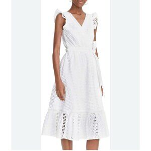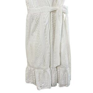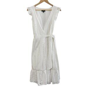 J.CREW FULL EYELET WHITE COTTON WRAP MIDI DRESS