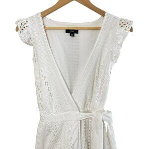 J.CREW Full Eyelet White Cotton Wrap Midi Dress, 00