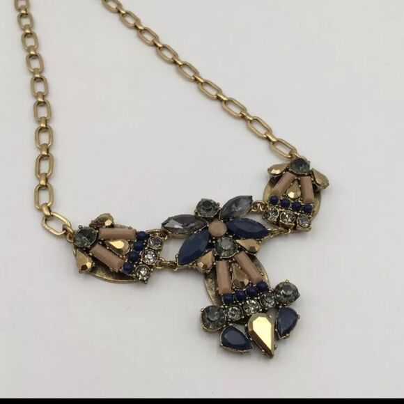 J.CREW GOLD TONE GREY CUT CRYSTAL BLUE LIGHT BROWN RESIN 17"-19" NECKLACE NWOT