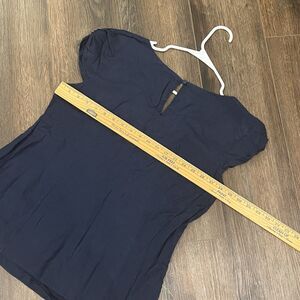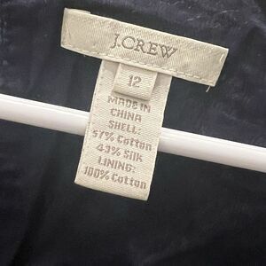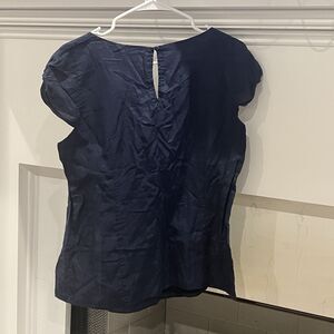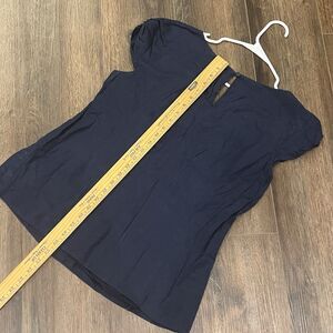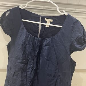 J.CREW Gathered Pintuck Neck Cap Sleeve Top Navy 12 Silk Cotton Blend Blouse
