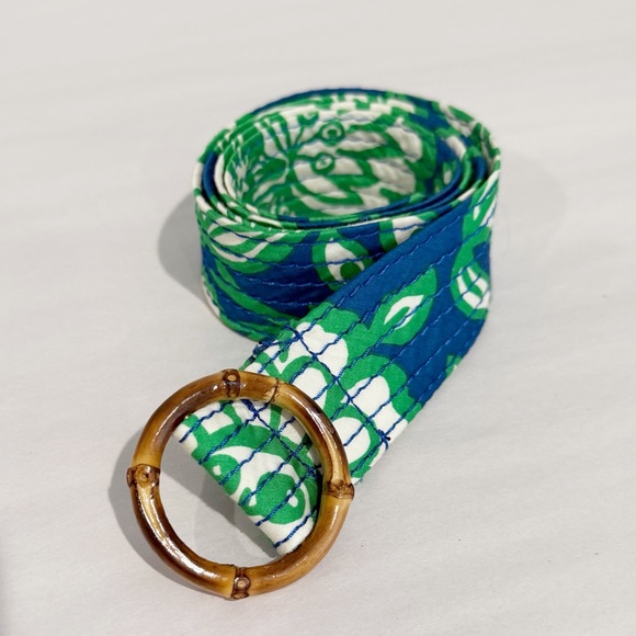 J.CREW Green & Blue Floral Belt Bamboo Buckle Beachy Coastal