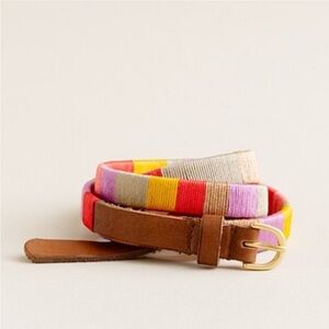 J.CREW Green & Blue Floral Belt Bamboo Buckle Beachy Coastal Size Small/Medium