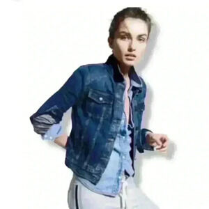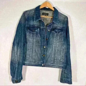 J.CREW Indigo Denim Jacket Women’s Front Button Blue Long Sleeve With Measure