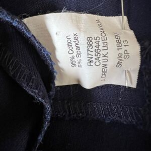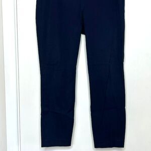 Navy blue "Minnie" style trouser pants featuring side zipper, slim skinny leg and ankle length. Made of 95% Cotton and 5% spandex. In excellent condition.