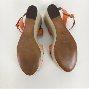 JCREW J CREW Size 7 Orange Patent Leather Strappy Wedges Platform Heels Sandals