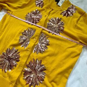 jcrew jc j crew embellished sequin cardigan cropped classic fit sweater top floral flowers yellow mustard pink sparkly l large dressy special occasion classy cute trendy warm winter cold weather wear luxury brand htf sold out well made